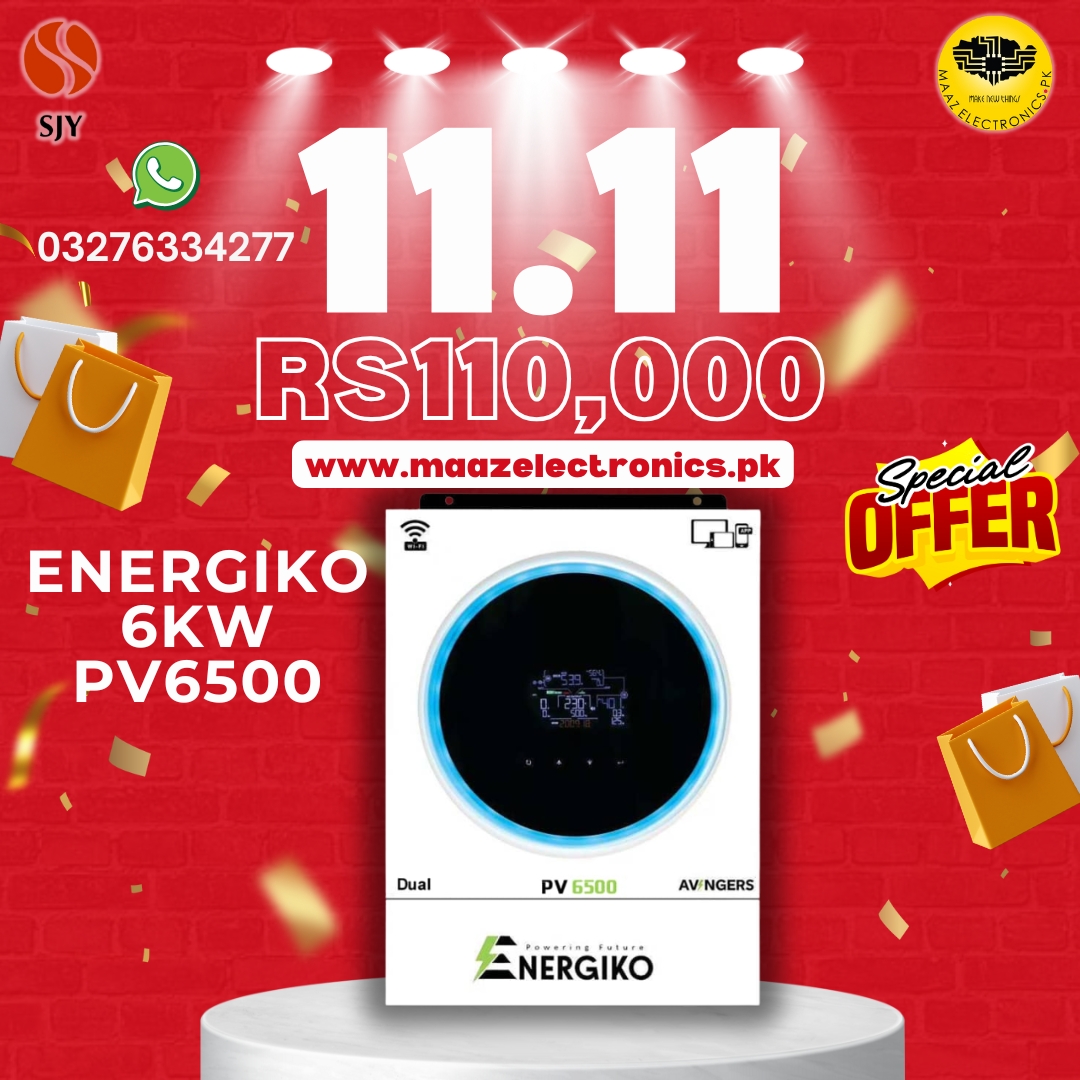 The ENERGIKO 6KW Avenger’s Series PV 6500 is a high-performance power conversion solution that is designed to provide maximum efficiency, reliability, and flexibility. With its advanced MPPT technology, wide input voltage range, and high surge capacity, this inverter is an ideal choice for residential and commercial solar power systems.