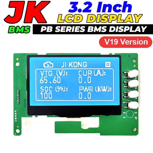 Featuring a clear 128×64 high-contrast screen, the display ensures excellent readability in both indoor and outdoor installations. Using a stable TTL communication interface, it connects directly to compatible JK V19 PB Series BMS units, offering a plug-and-play solution without the need for mobile apps or external devices.